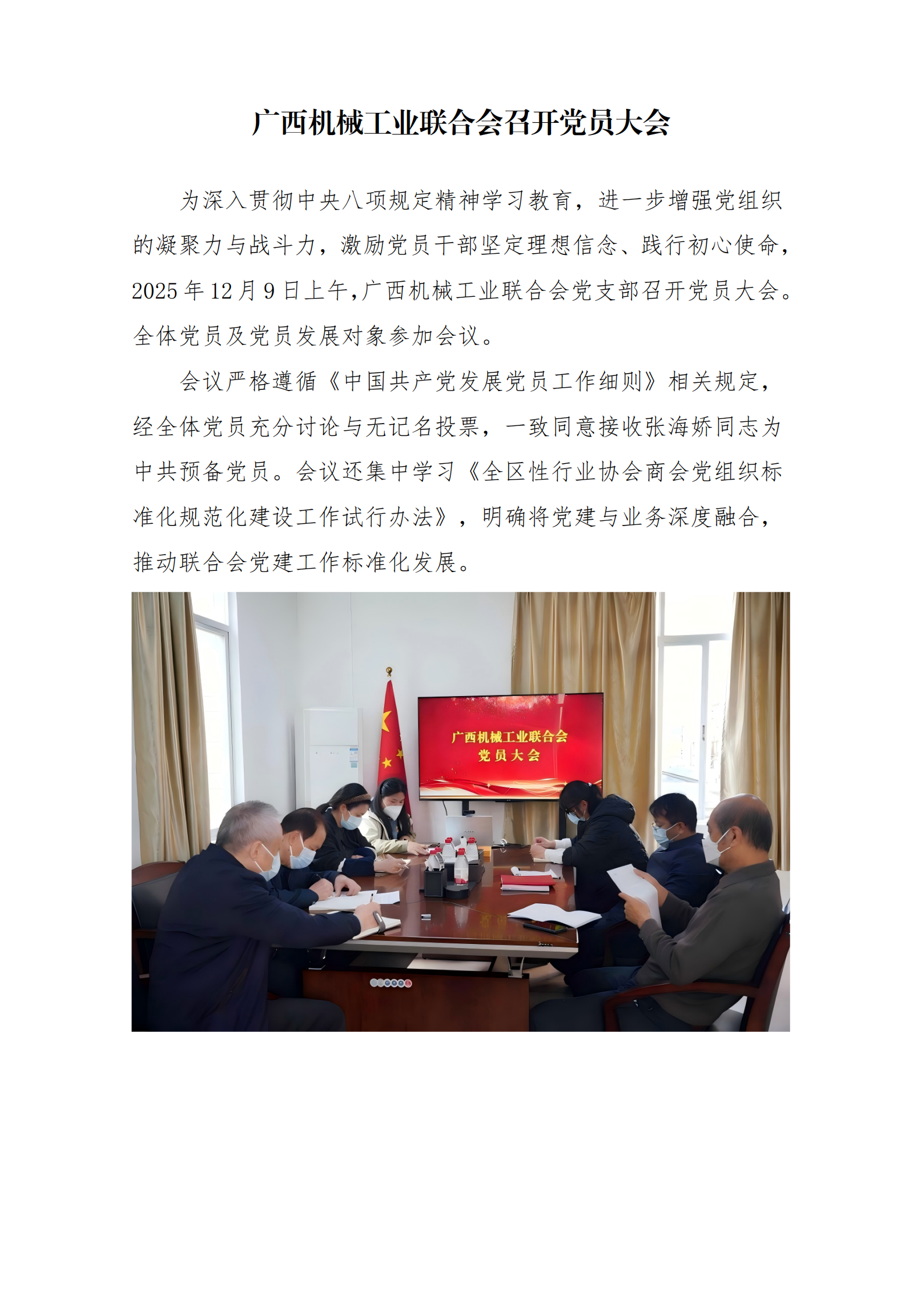 广西机械工业联合会召开党员大会